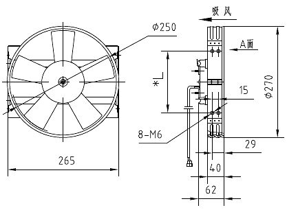 | 风量(m3/h) | 1448 | 1260 | 1106 | 1010 | 911 | 728 | 609 | 539 | 400 | 298 | 160 |